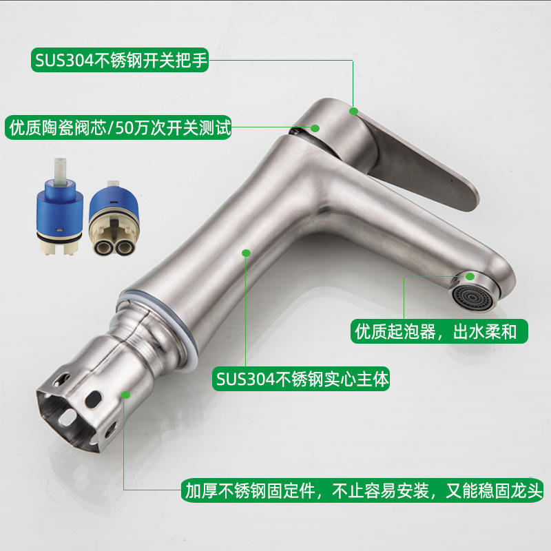 Grifo Monomando para Lavabo de Acero Inoxidable 304 con Válvula Cerámica, Montaje en Cubierta, de un Solo Orificio