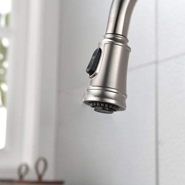 Grifo de cocina monomando de acero inoxidable con caño alto extraíble y rociador, grifos de fregadero de un solo nivel