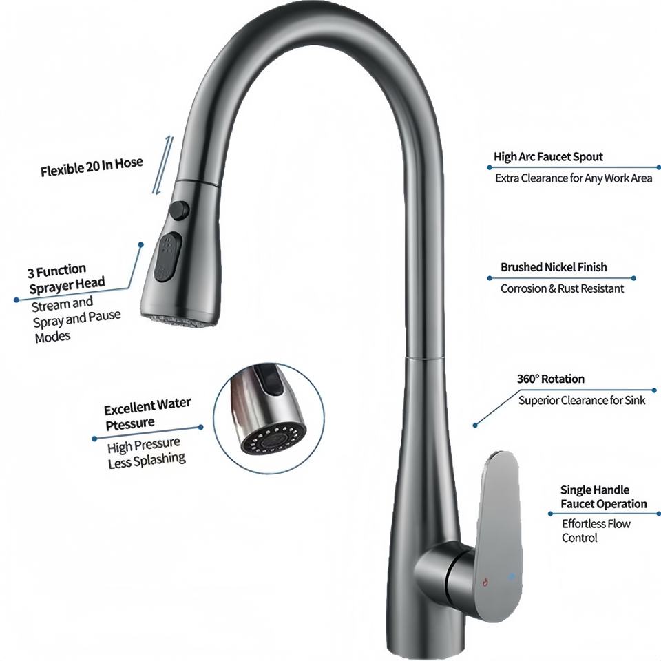 Característica:Flexible, Fácil instalación, 360 grados giran, Tirar hacia abajo los grifos de la cocina, Grifos termostáticos, Seguro de acoplamiento, Saque aerosol