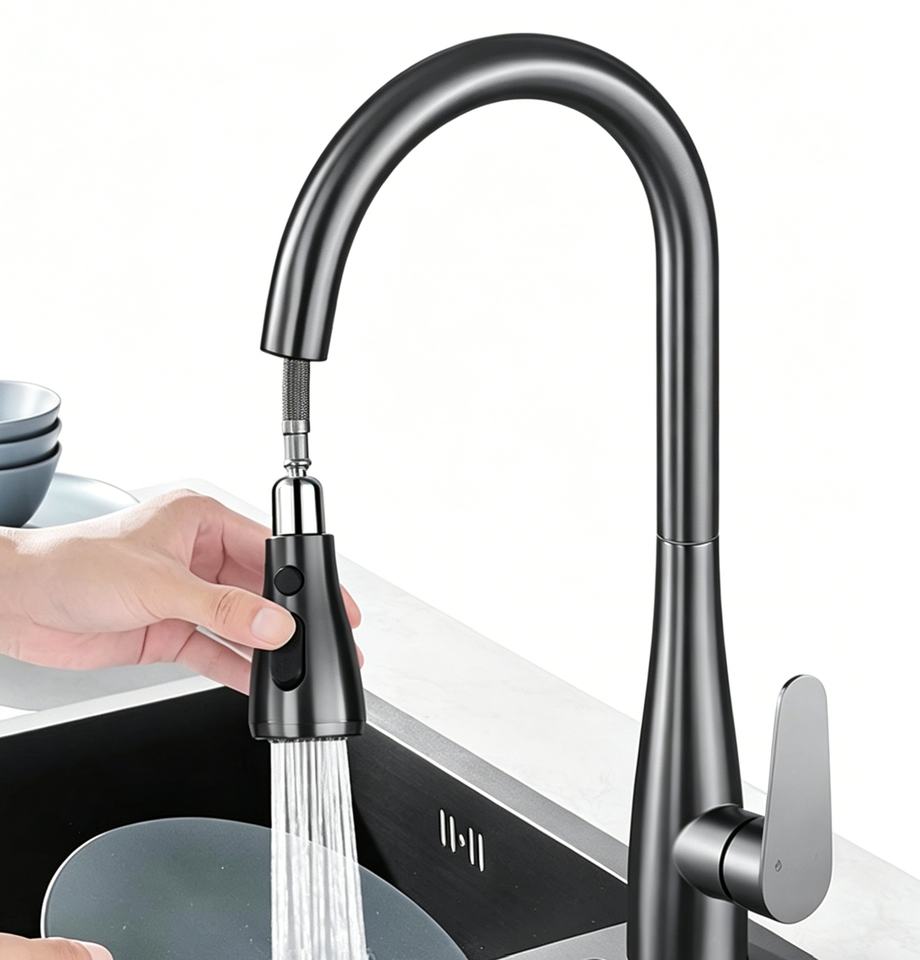 Flexible, Fácil instalación, 360 grados giran, Tirar hacia abajo los grifos de la cocina, Grifos termostáticos, Seguro de acoplamiento, Saque aerosol