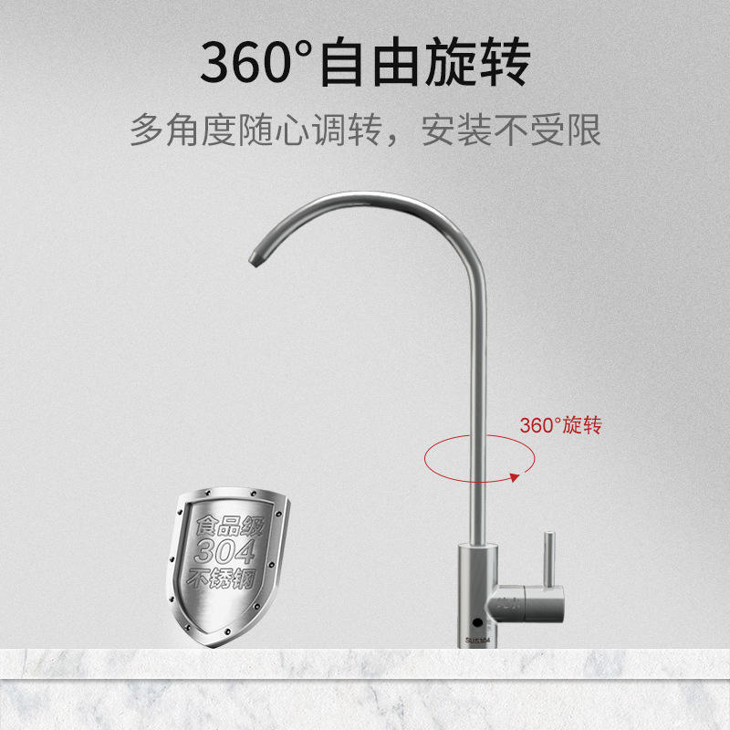 Grifo de Cocina Monomando de Acero Inoxidable 304, Montado en Encimera, con Salida de Aguas Residuales y Purificador de Agua Potable Directa