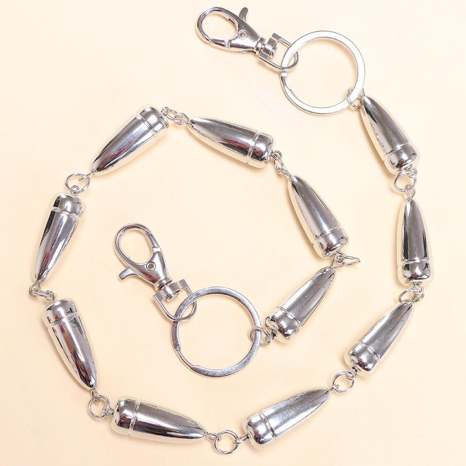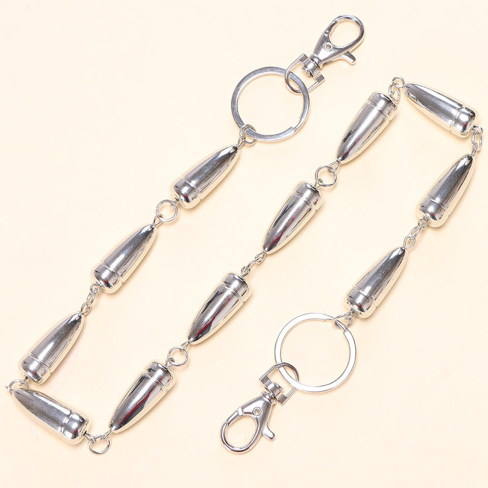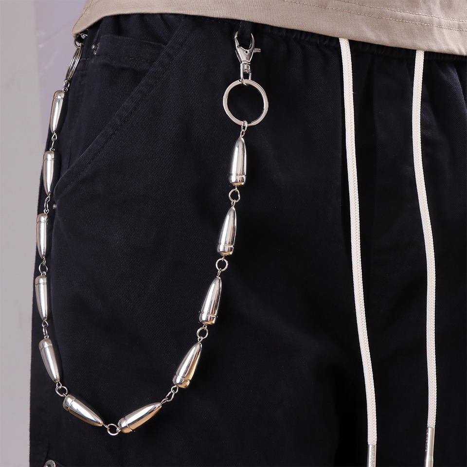 Cadena de pantalón de una sola capa con forma de bala, cadena metálica para la cintura para hombre, accesorio de mezclilla estilo rock