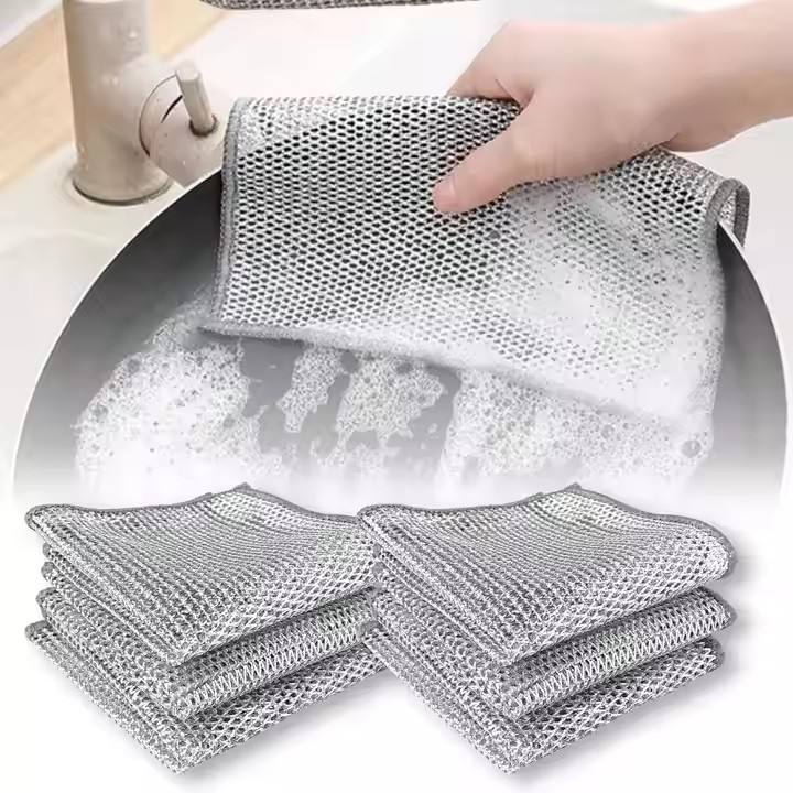 Paño de Cocina de Una Sola Capa con Hilo Plateado, Paño Multiusos Reutilizable para Lavar Platos, Trapo de Limpieza para el Hogar