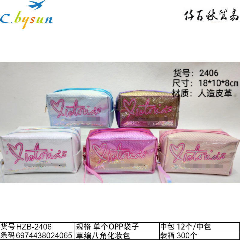 Bolsa cosmética de paja octogonal única Material de PC en forma de rectángulo con bolsa OPP individual
