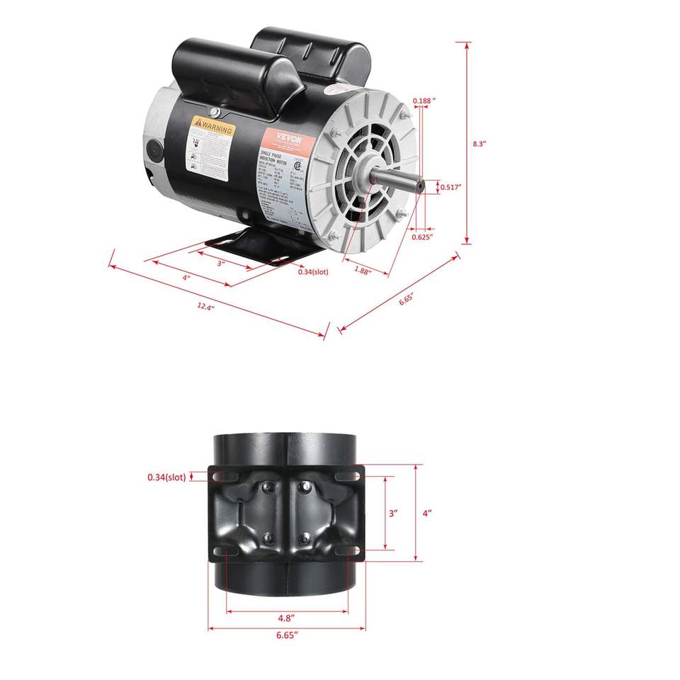 Motor de compresor de aire monofásico de 3.7 HP, 3450 RPM, 230 V, 17.2 amperios, eje con chavetero de 5/8 pulgadas, marco 56, longitud de eje de 1.88 pulgadas, categoría de motores de CA