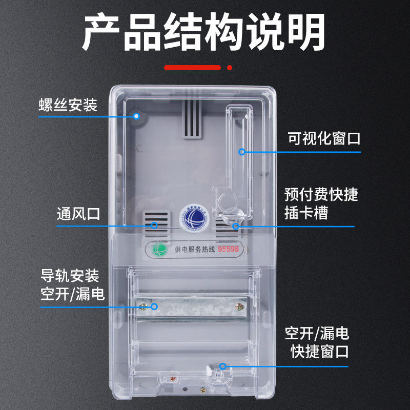 Caja de medidor de electricidad monofásico Ip54, caja de distribución con cubierta transparente de material de PC montada en la pared para uso doméstico y de alquiler
