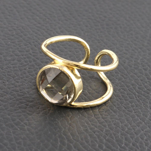 Anillo de banda de brazalete de piedra preciosa de forma redonda única, anillo de banda abierta ajustable de cuarzo transparente cortado a cuadros, anillo de banda de doble capa chapado en oro