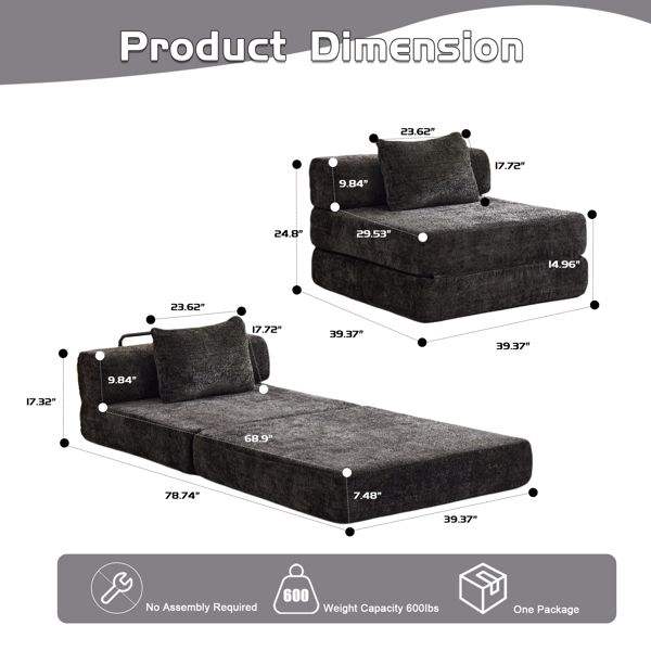Sofá Seccional Modular Individual sin Estructura, Convertible en Cama de Piso, Marco de Forma Fija, No Requiere Montaje, Sofá Compresible