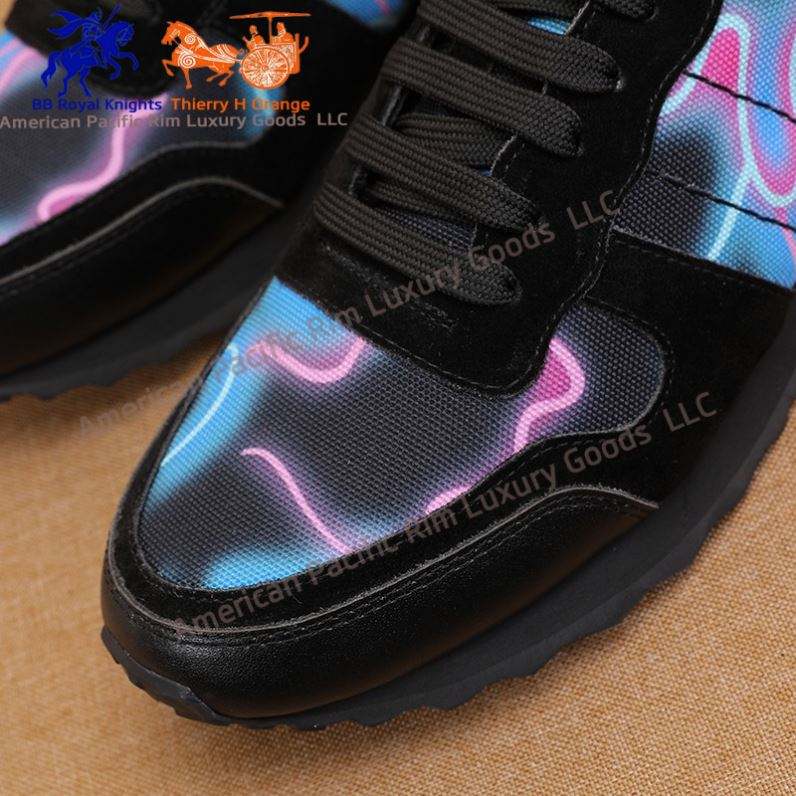 Zapatillas bajas retro de moda casual con cordones y paneles de cuero estampado degradado iridiscente negro, novedad 2026