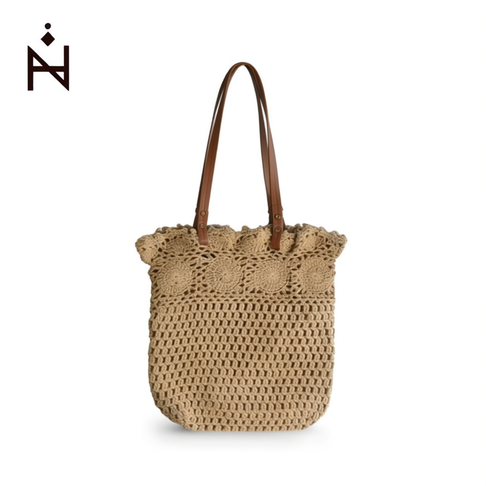 Bolso de hombro de algodón con flores y cuerda, 34x33cm, de ganchillo, para mujer, uso casual.