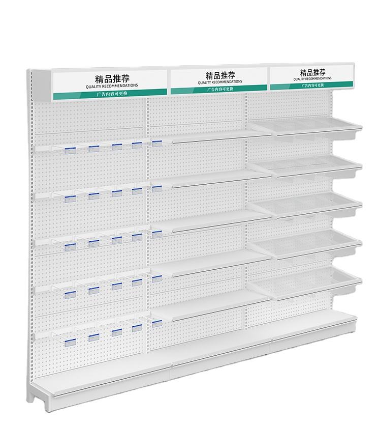 Estante de exhibición de supermercado de un solo lado, con caja de luz y gancho