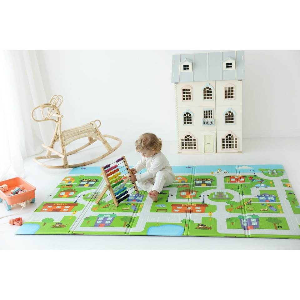 Alfombra de juego para bebés XPE de un solo lado, 160x140x1,5 cm, ciudad de espuma no tóxica impermeable enrollable