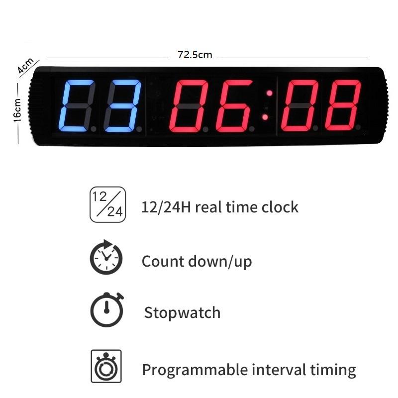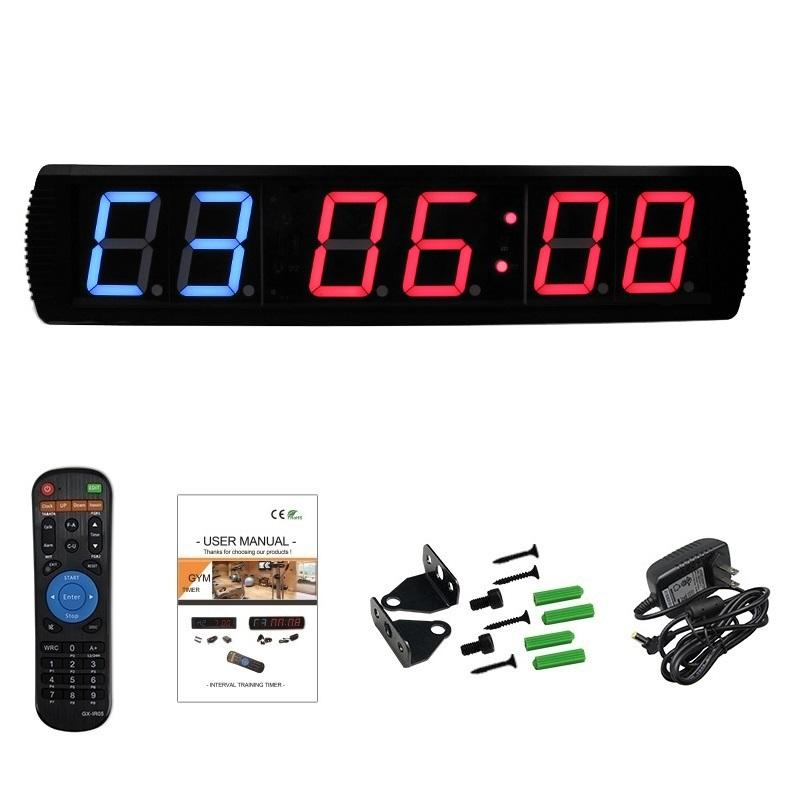 Pantalla grande de un solo lado, pantalla LED azul y roja de 4 pulgadas, reloj de Cuenta regresiva Digital para gimnasio Hiit Fitness, temporizador de entrenamiento de intervalo electrónico