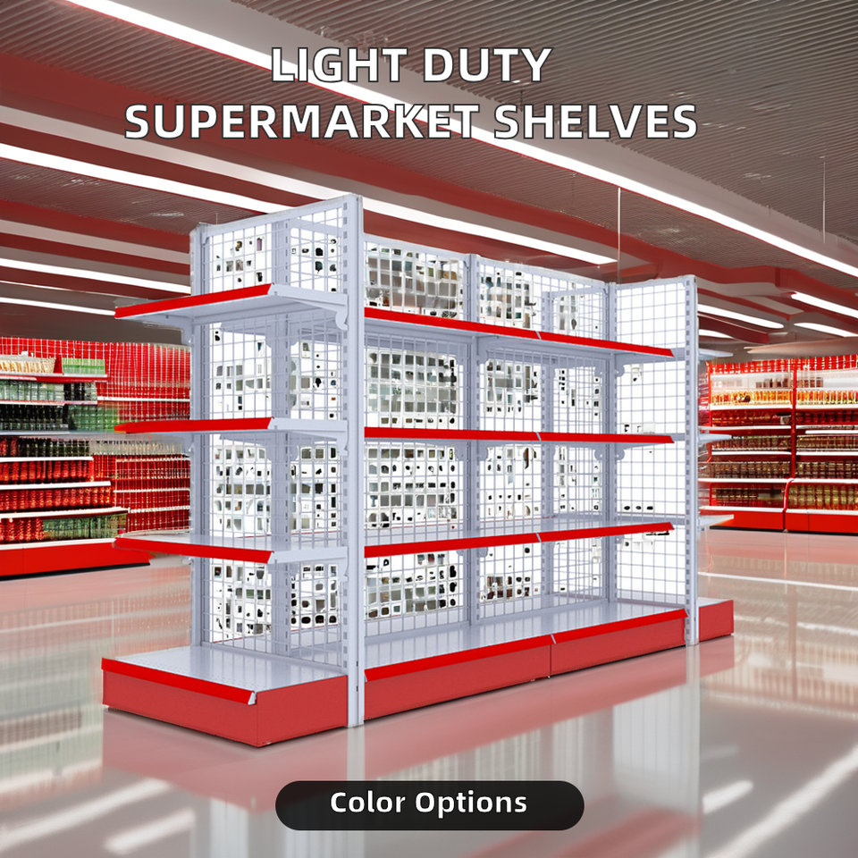 Estante metálico de un solo lado para pequeños supermercados Estante de exhibición de Servicio Ligero para un fácil montaje para tiendas de comestibles y tiendas