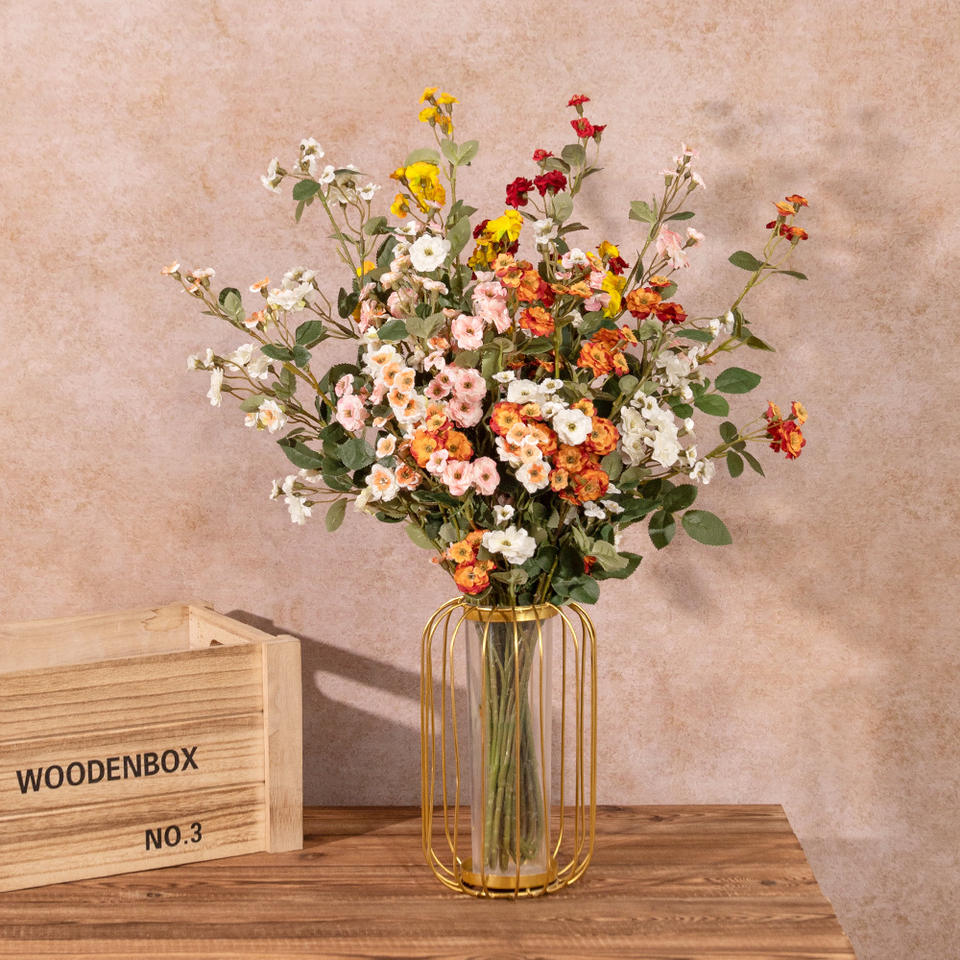 Ramo de Flores Artificiales de Rosas Pequeñas de Tallo Único y Múltiples Cabezas, Estilo Nórdico, para Decoración de Sala de Estar y Mesa de Comedor, de Seda
