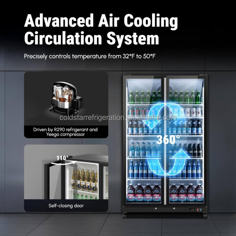 COLDSTAR-Enfriador de pantalla de cerveza portátil de temperatura única de dos puertas, control digital, equipo de refrigeración CE, 2 puertas