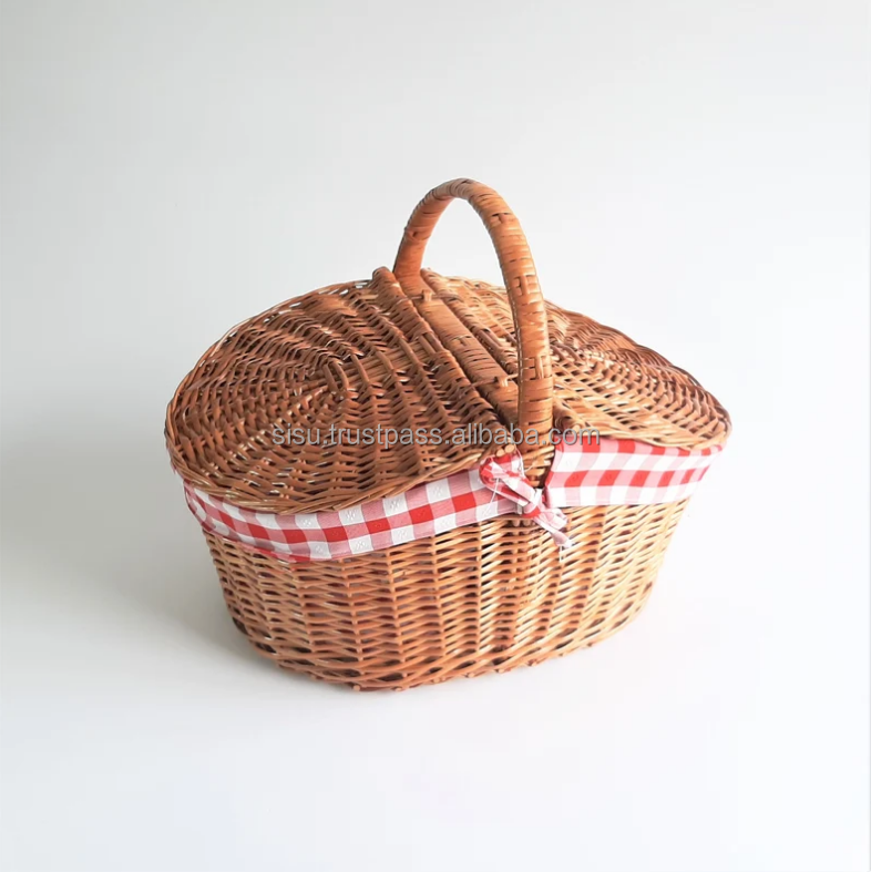 Cesta de almacenamiento de picnic de ratán de un solo nivel ecológica con tapa muebles de ratán para uso en la cocina interior del hogar diseñado en Vietnam
