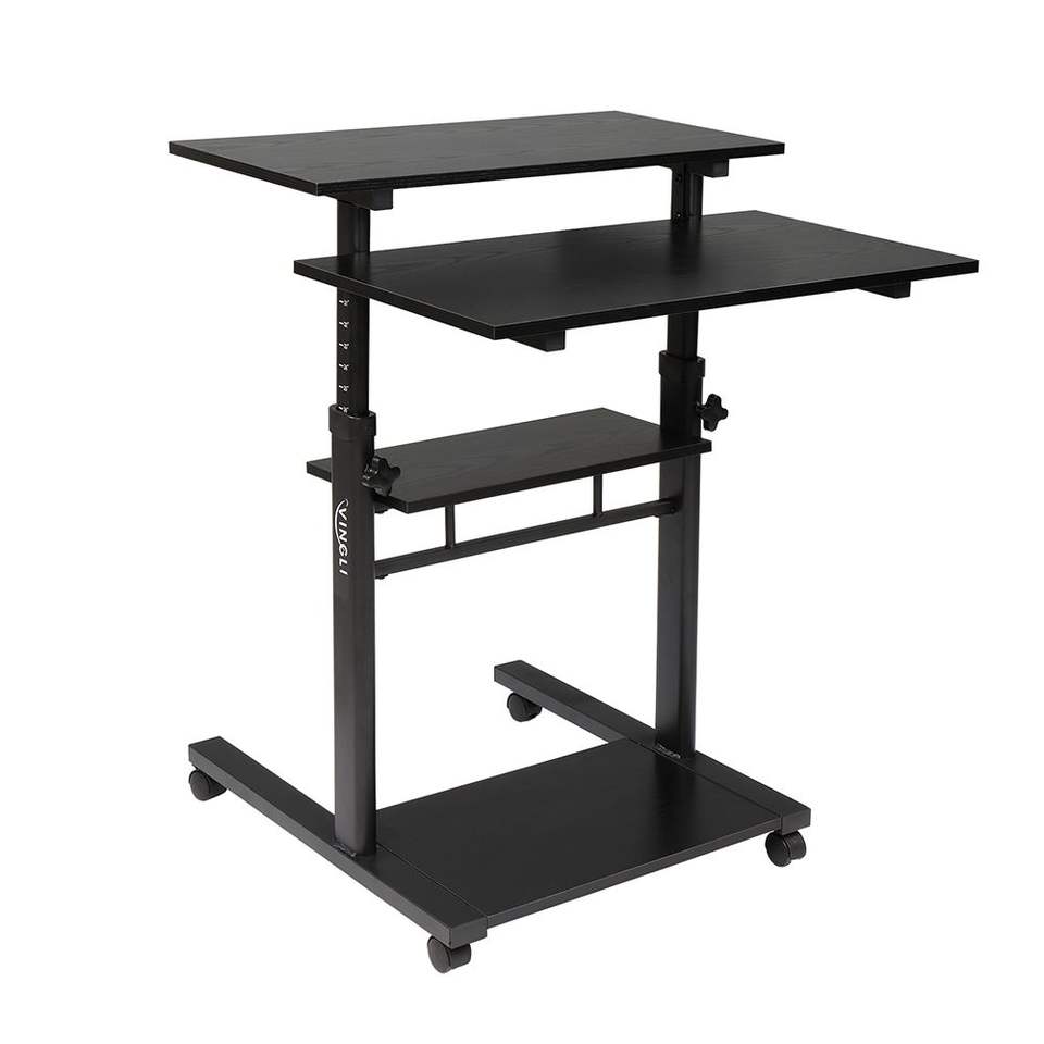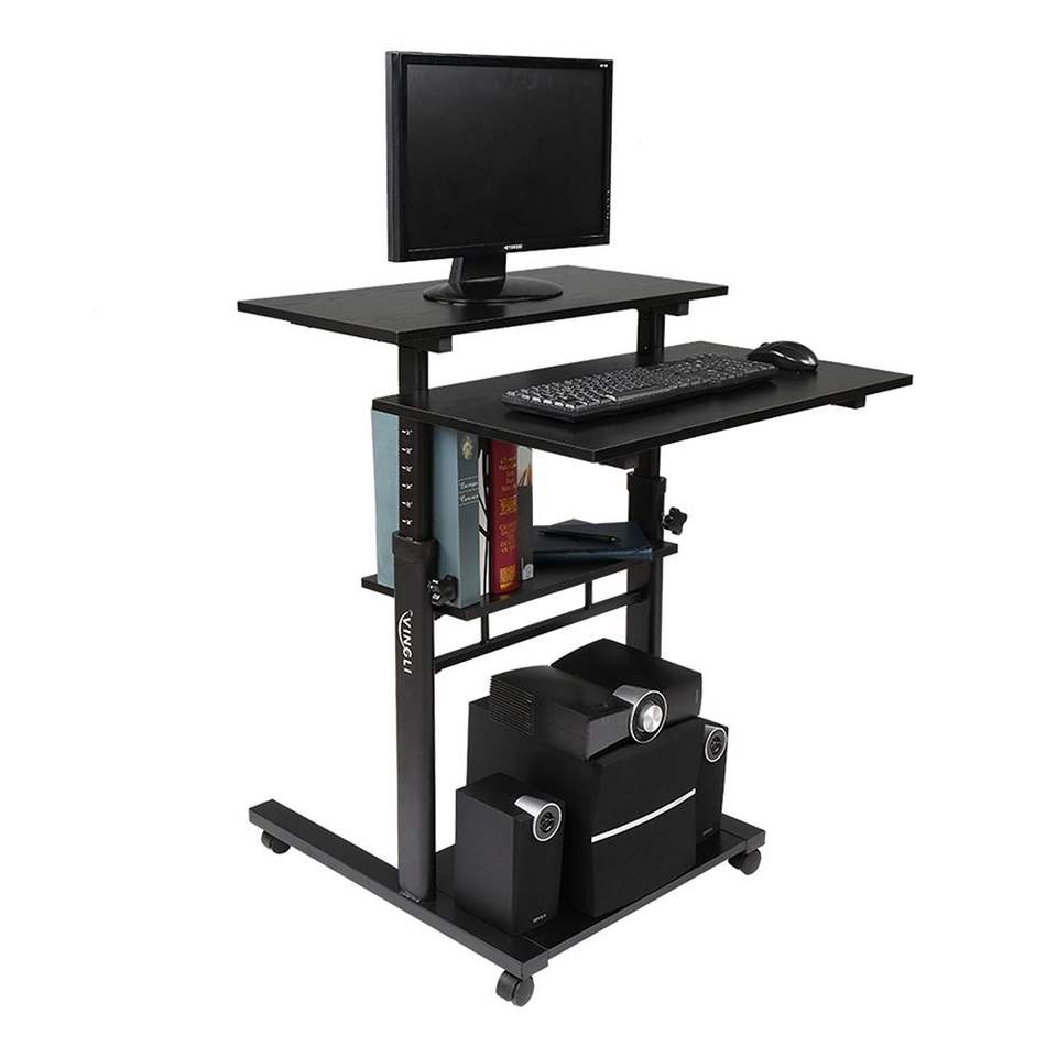 Escritorio de Computadora Negro con Elevación de un Solo Tubo, 70*70*65.5CM, Escritorio de Pie con Excelente Ergonomía