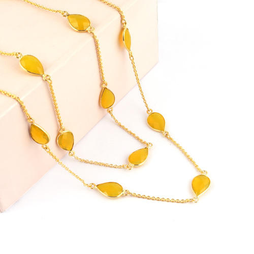 Collar de cadena de cuarzo amarillo hecho a mano, conjunto de bisel de oro de 18K, doble capa