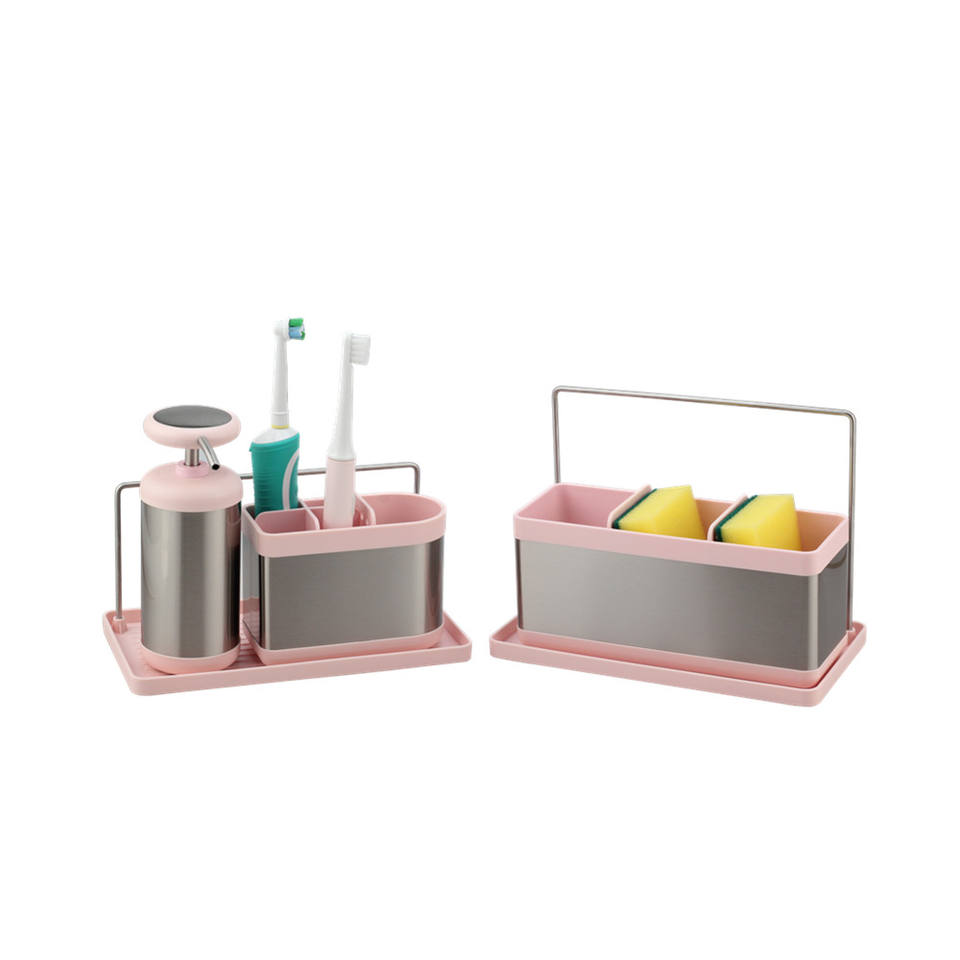 Organizador de fregadero Caddy con portaescobillas Pies antideslizantes Juego de dispensador de jabón para platos todo en uno