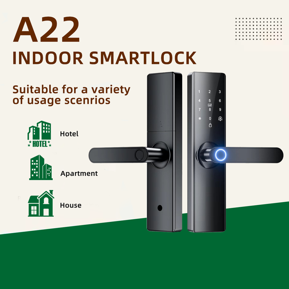 Cerradura Inteligente para Puerta de Madera con Almacenamiento de Datos en Tarjeta Sinon, Control por Aplicación WIFI, Desbloqueo sin Llave con Huella Dactilar
