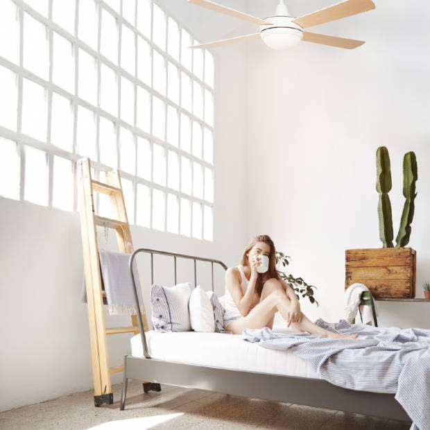 Ventilador de Techo UNIVERSALBLUE 4052W de 132 cm con Aspas Reversibles Blancas, Luz, Control Remoto, Metal ABS, para Uso en Exteriores y Hoteles, Enchufe Tipo Americano