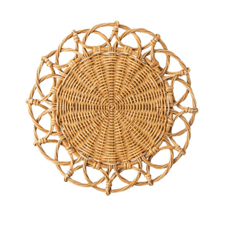 Salvamanteles Redondo de Ratán Ecológico de Estilo Bohemio de Sisu Handicraft, Decoración Elegante para el Hogar