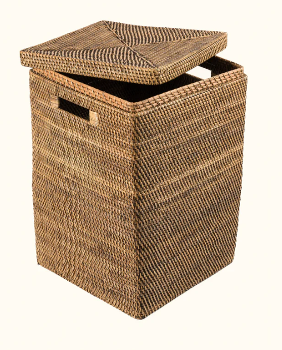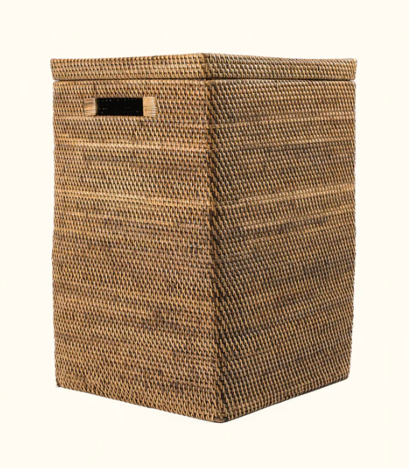 Juego de 2 Cestas de Almacenamiento de Ratán Marrón de Sisu Handicraft, Diseño Simple Ecológico, con Asa Recortada, Forma Cuadrada, Multiusos