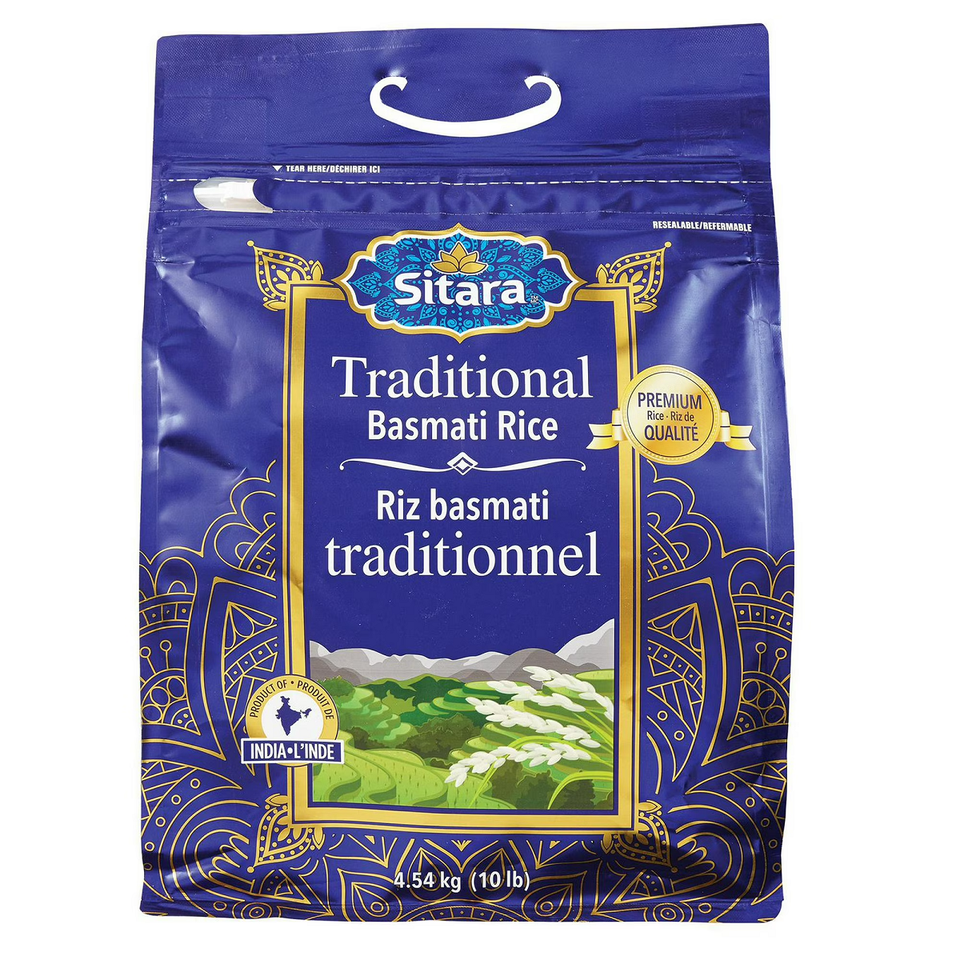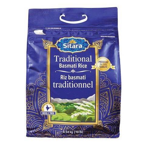 Arroz Basmati Sitara - Suave, Esponjoso y No Pegajoso - Ideal para Restaurantes y Cocineros Caseros - Paquete de 10 kg