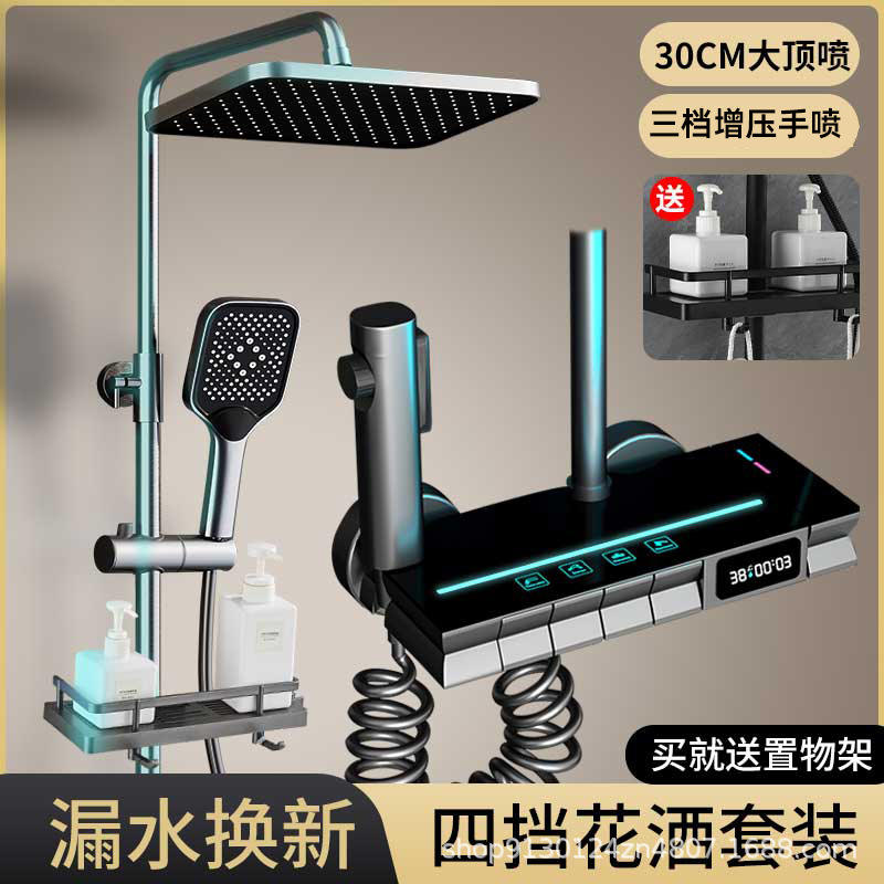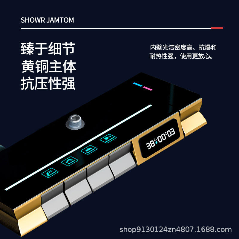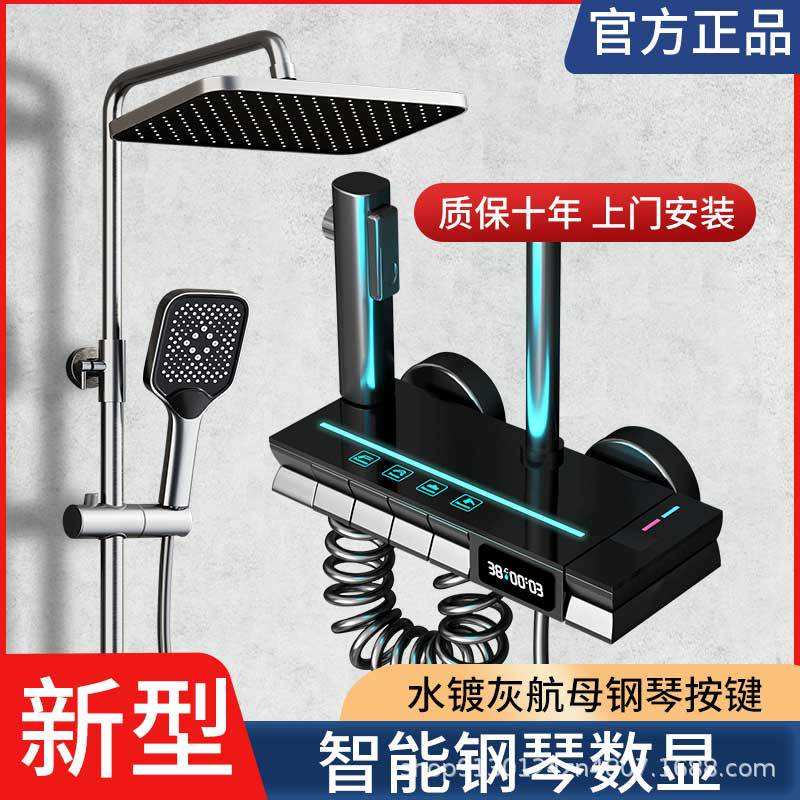 Juego de Ducha Personalizable de Seis Piezas, Rectangular, de Cobre, Termostático, con Pantalla Digital de Control de Temperatura para Baño