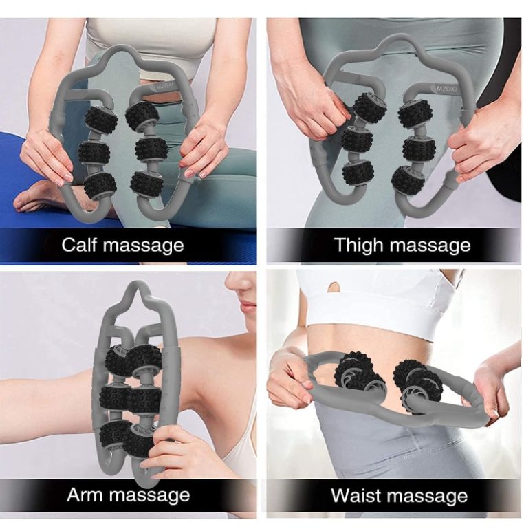 Rodillo de masaje muscular Fascia de seis ruedas para aliviar el dolor muscular Muslo Reducir la celulitis Masaje de tejidos profundos