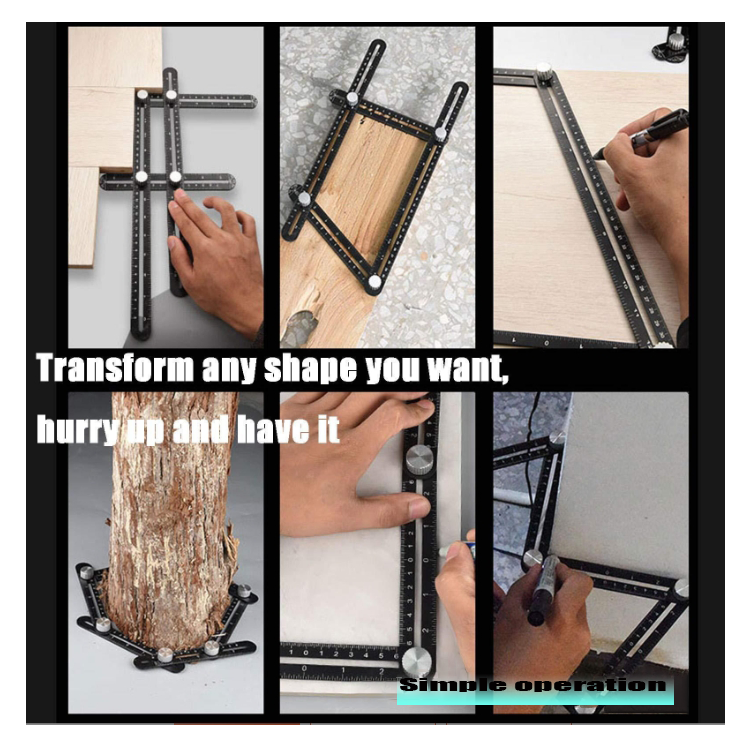 Regla de medición de seis pliegues, herramienta de plantilla de 6 lados multiángulo negro, posicionador de apertura multiángulo de aleación de aluminio