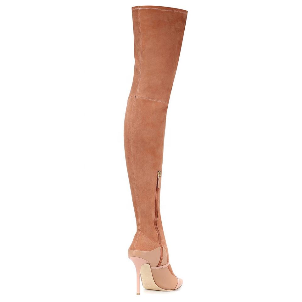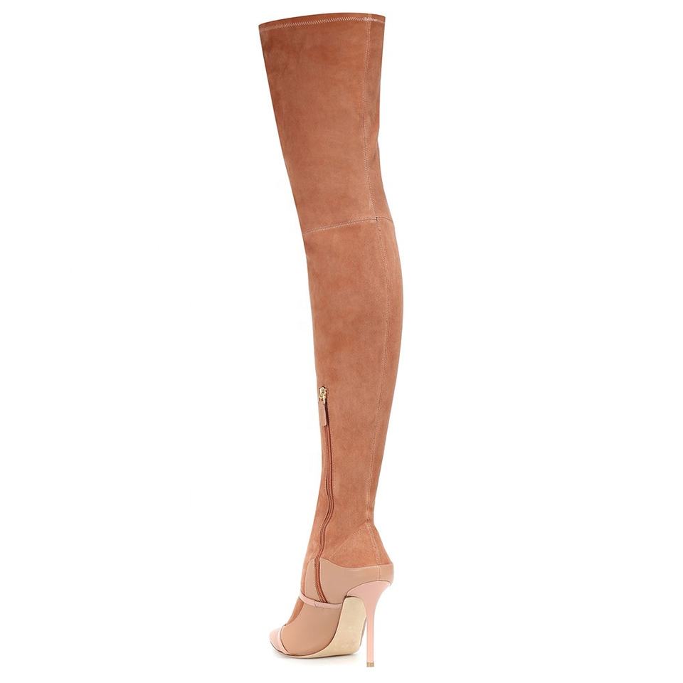 Botas Largas de Tacón Fino para Mujer, Talla 46, Personalizadas, con Parte Superior de Gamuza Elástica, Cierre Lateral, Botines Altos por Encima de la Rodilla, Zapatos Elásticos para Dama