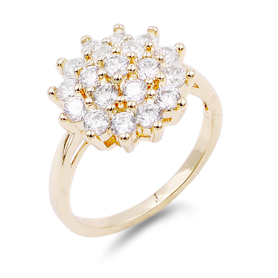 Tamaño 7 Anillos de compromiso chapados en oro con circonita cúbica Bisel de piedra cortada rodiada Ajuste Promesa Ocasión