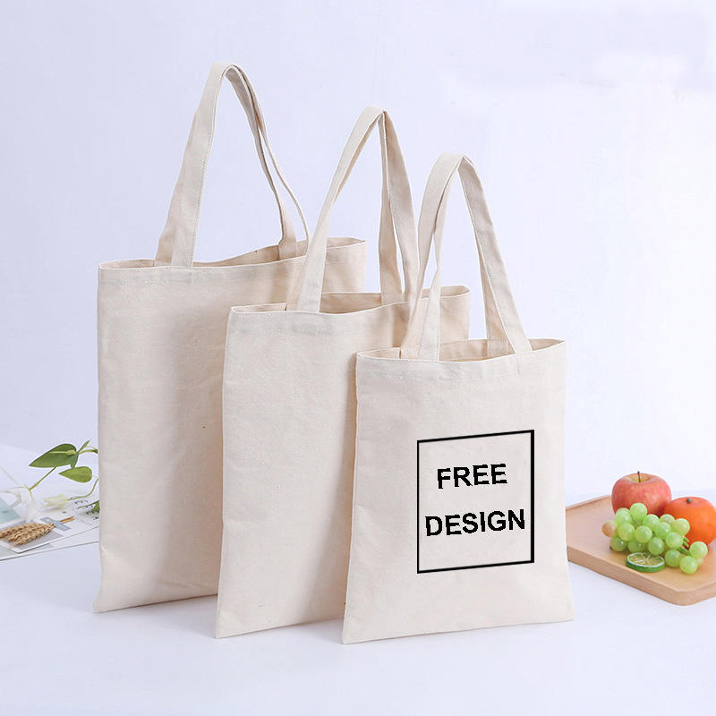 Tamaño personalizado logotipo impreso respetuoso con el medio ambiente reciclado reutilizable liso en blanco orgánico Calico algodón lona bolsa de compras de comestibles 59