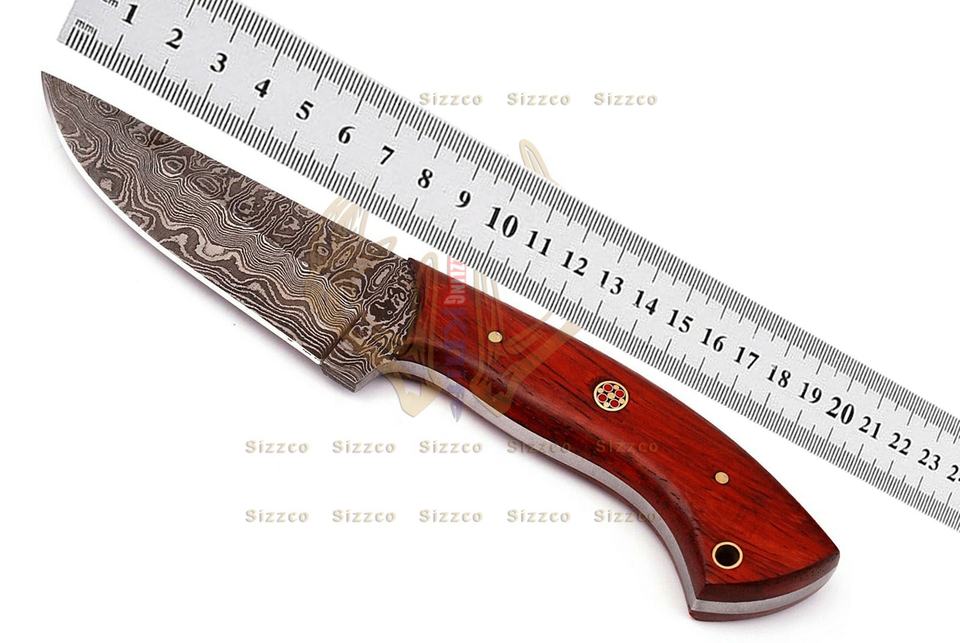 Sizzco hecho a mano de acero de Damasco hoja fija multiusos cuchillo de utilidad hermoso diseño Skinner mango de madera dura para caza