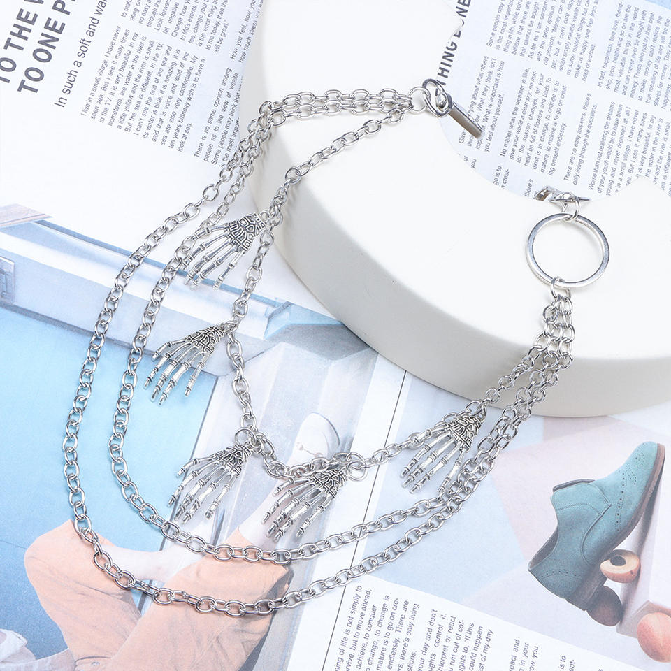 Colgante de mano de esqueleto, cadena de cintura de metal multicapa, accesorio de estilo callejero para Halloween, aleación de zinc, blanco K