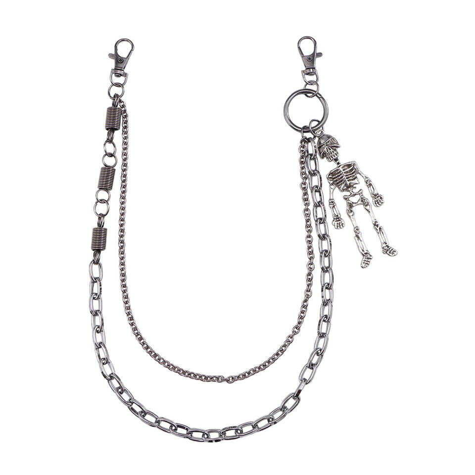 color:Double-layer human skull pants chain