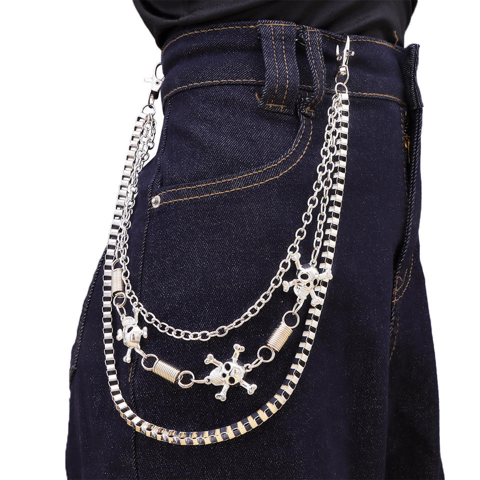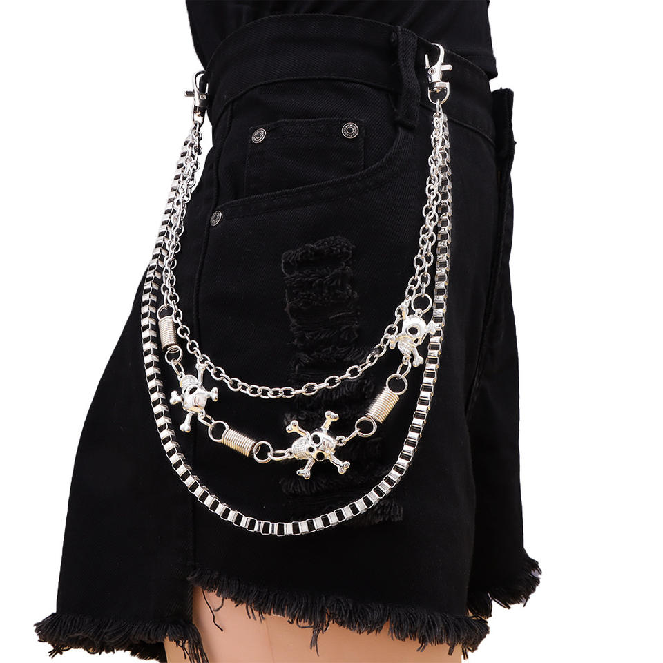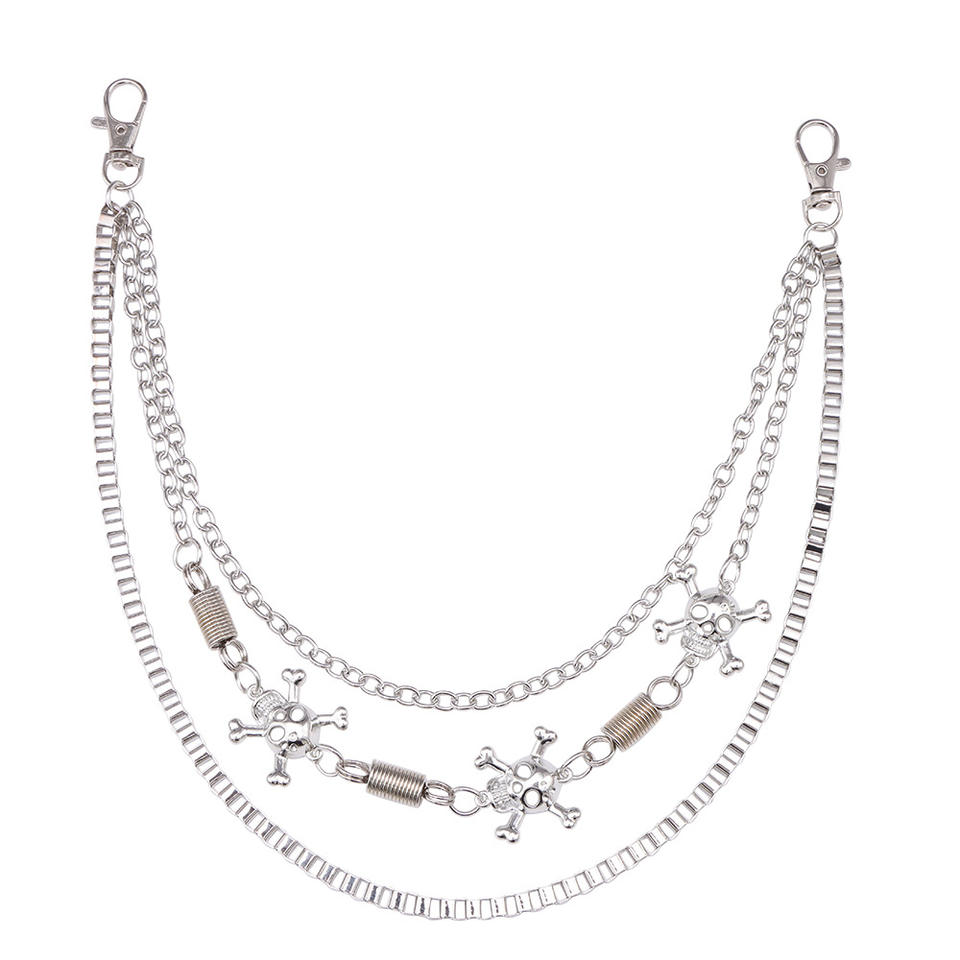 Cadena de cintura esqueleto multicapa de metal, estilo hip hop punk, unisex, cadena corporal de moda, plata tibetana blanca K