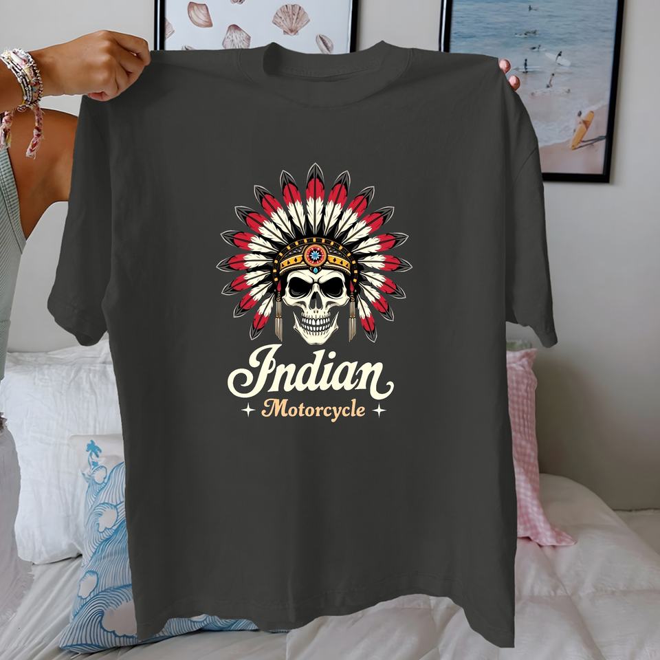 Calavera con texto de motocicleta India Camiseta de mujer de algodón puro ajuste cómodo