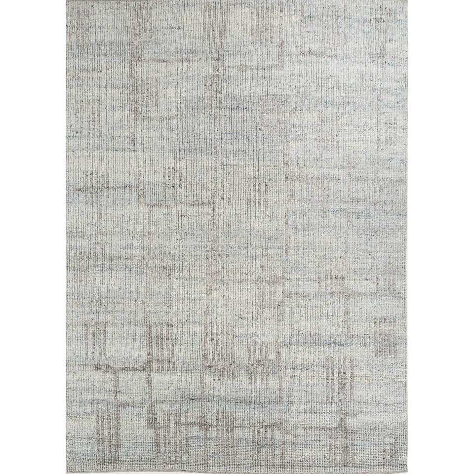 Alfombra de Lana Anudada a Mano Skwl-356, Color Azul Manifest, Diseño Clásico Abstracto para Sala de Estar, Alfombra Rectangular con Diseño de Diamantes para Pasillo, Ideal para Adolescentes