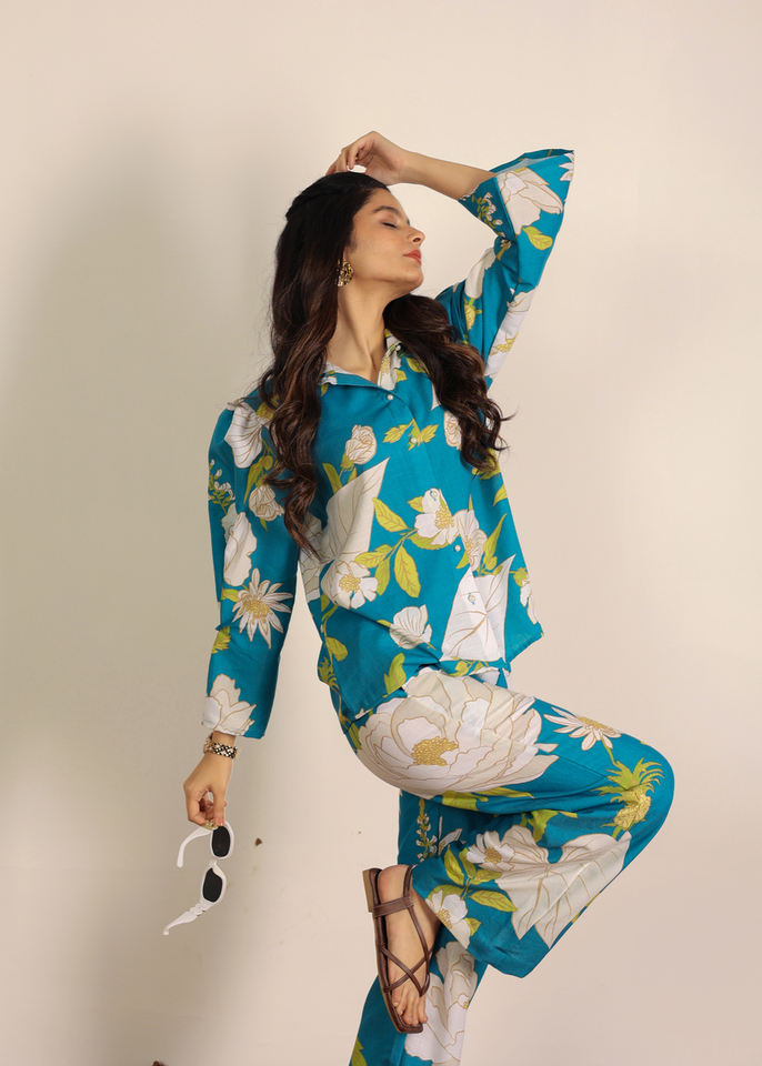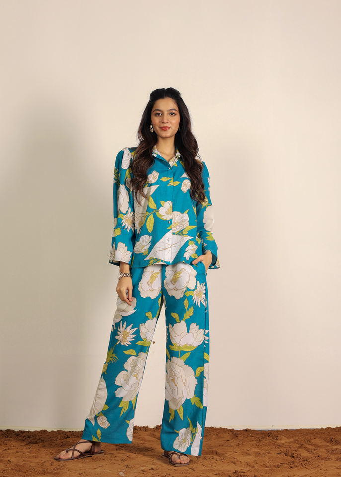 Nombre del producto:Relaxed Co-Ord Set con cuello escote camisa y pantalón