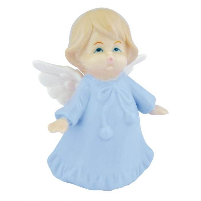 Escultura de Ángel de Cerámica Azul Cielo, 6.5*5.2*9.9 Pulgadas, Diseño de Ángel
