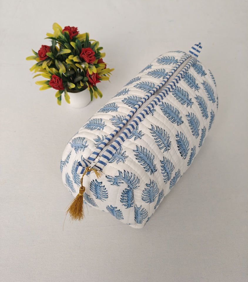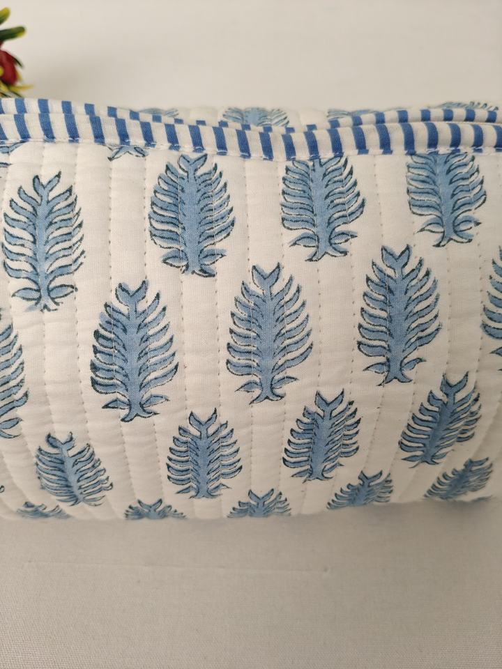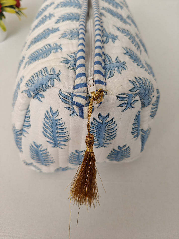 Estuche organizador de maquillaje de viaje ecológico de gran capacidad para neceser indio de algodón acolchado hecho a mano Floral azul cielo
