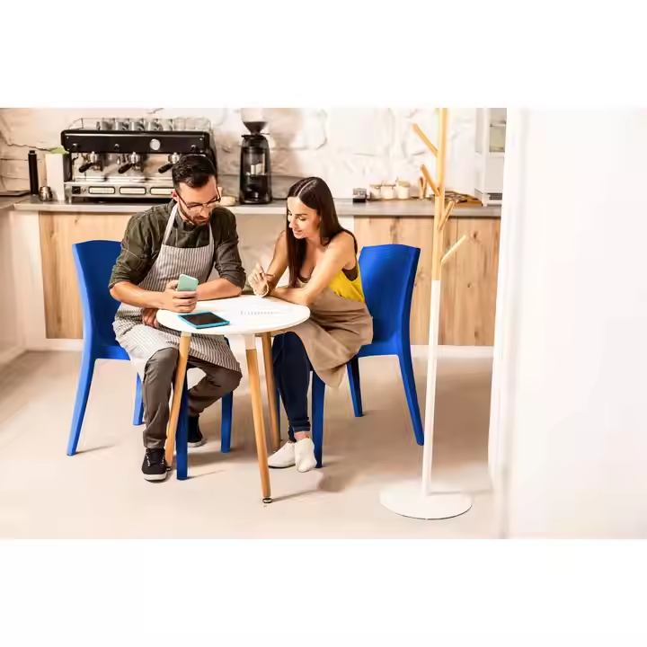 Silla de plástico versátil moderna azul cielo para uso en exteriores y sala de estar