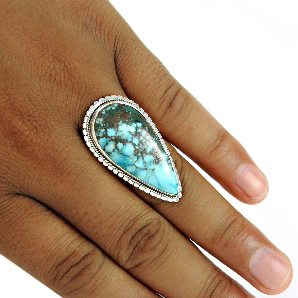 Anillo de piedras preciosas de turquesa Natural azul cielo para regalo del día de Navidad Plata de Ley 925 Joyería al por mayor Anillos finos Proveedores India