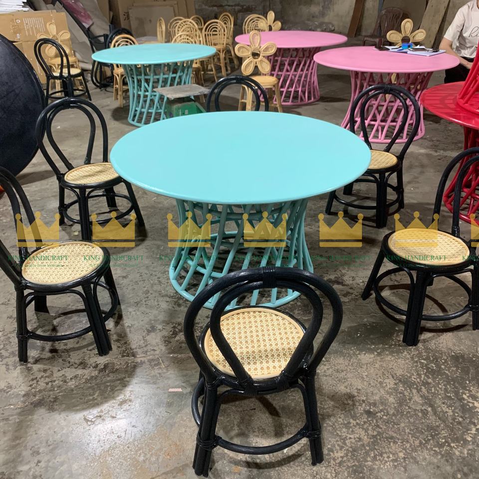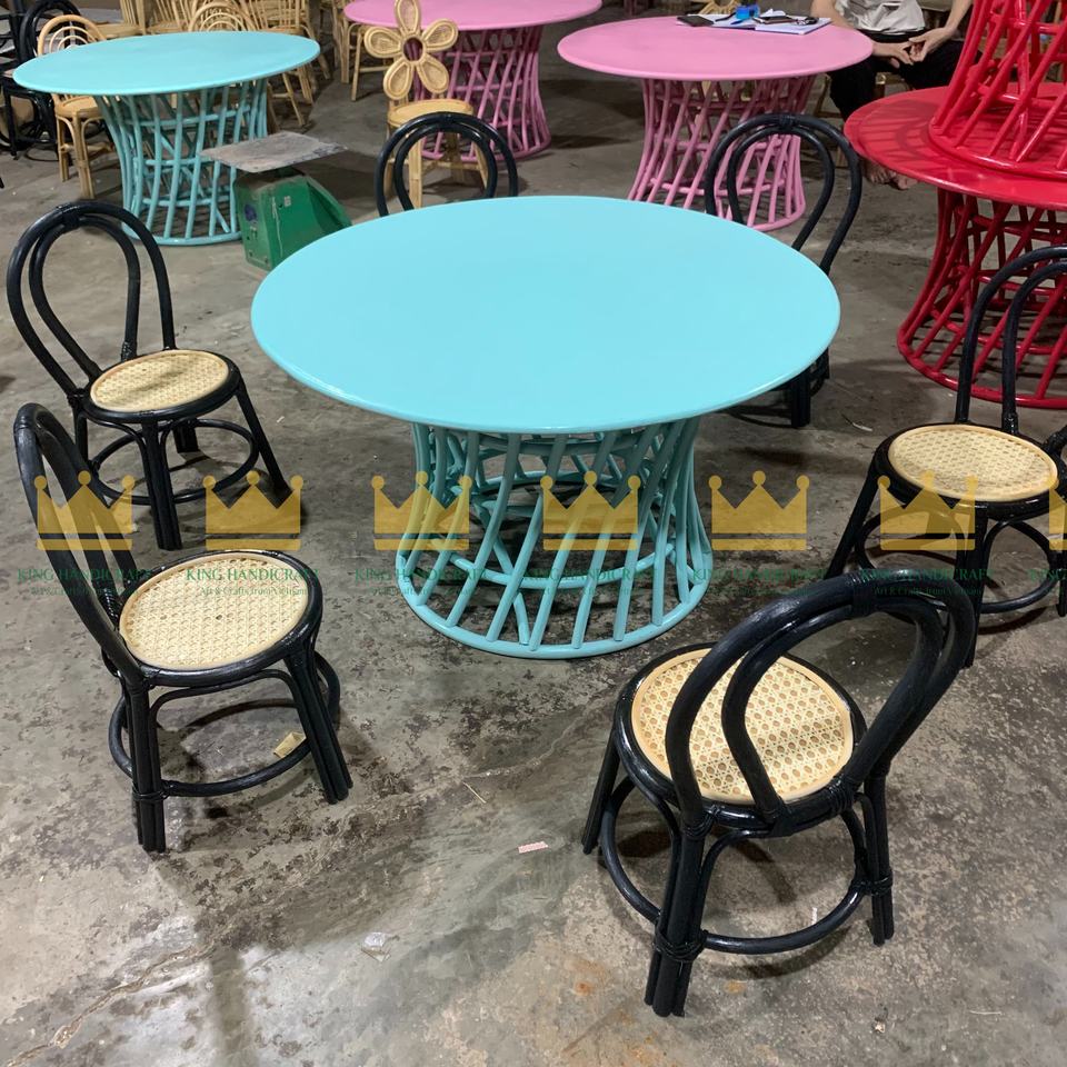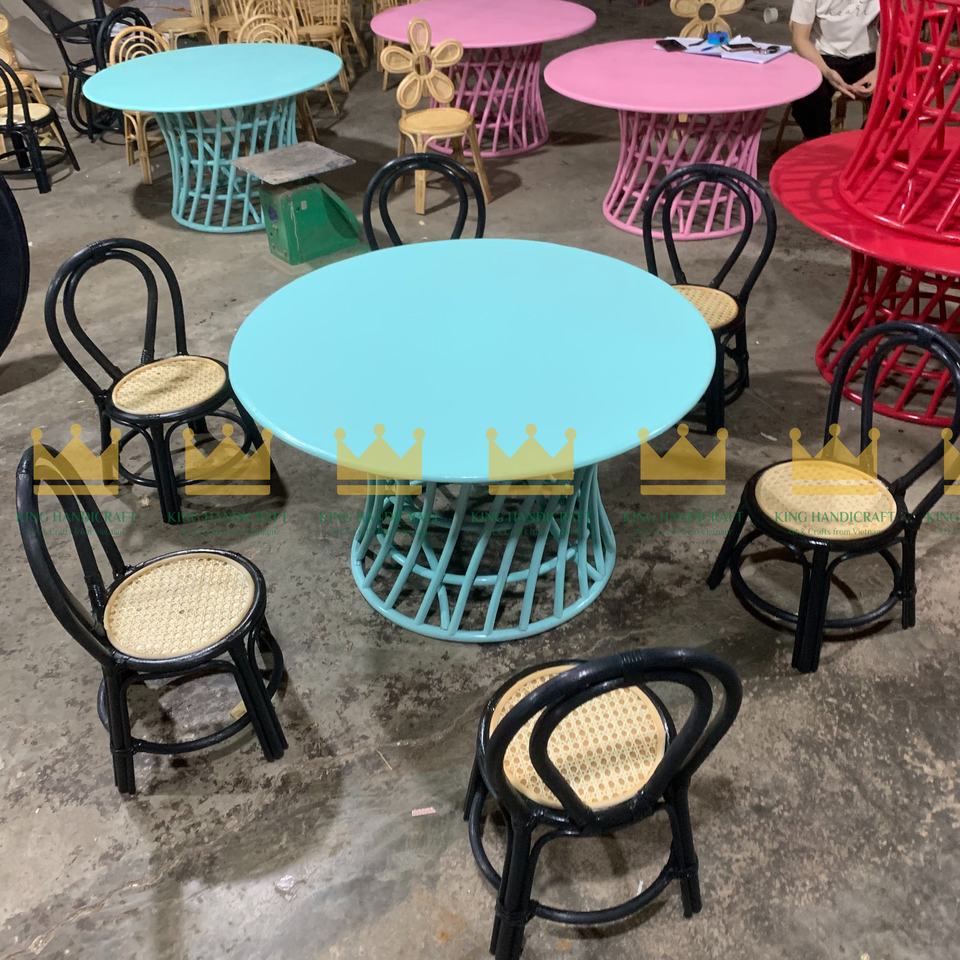 Juego de mesa y silla redonda de ratán azul cielo: un refugio natural y lúdico para los más pequeños