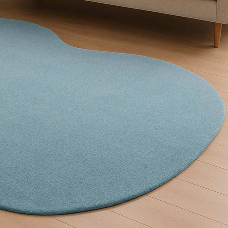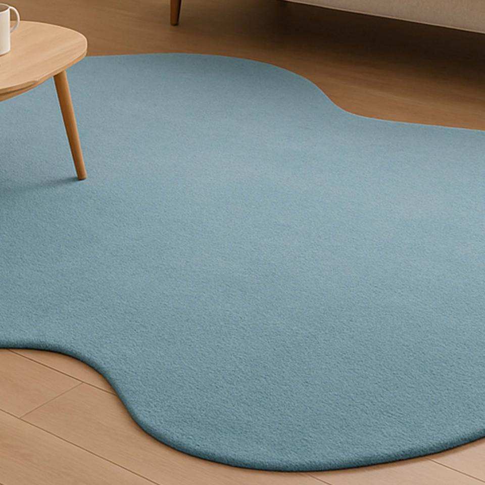 Alfombra de Lana Azul Cielo, Hecha a Mano con Forma Orgánica Minimalista y Suave, Personalizada para Sala de Estar o Picnic, Venta al Por Mayor desde India
