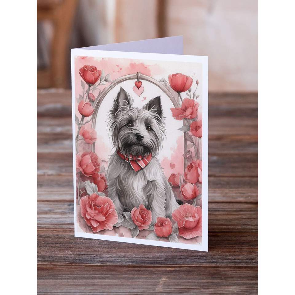 Skye Terrier Valentine Roses Whimsical A7 Tamaño 5x7 Tarjetas de notas en blanco Paquete de 8 con sobres Tarjetas de felicitación