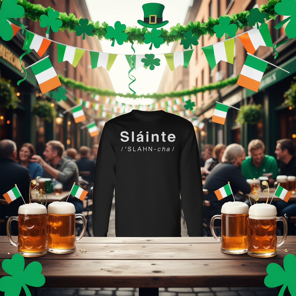 Camiseta de manga larga Slainte Irish Cheers To Good Health para el Día de San Patricio